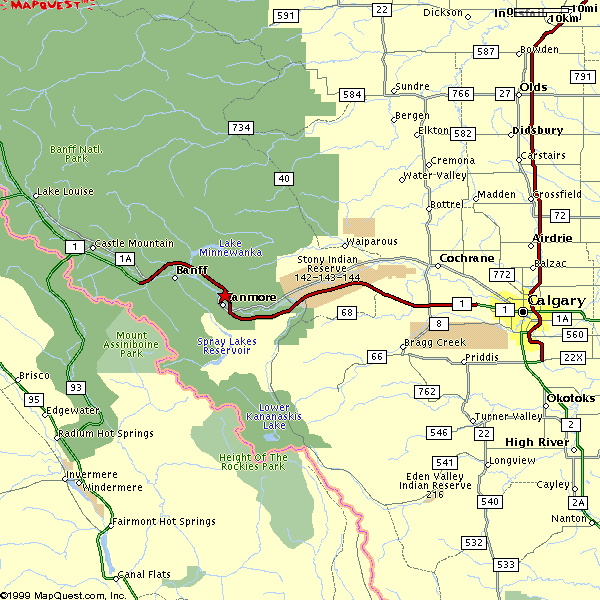 Our climbing areas extended from Canmore to Lake Louise -- see the map below